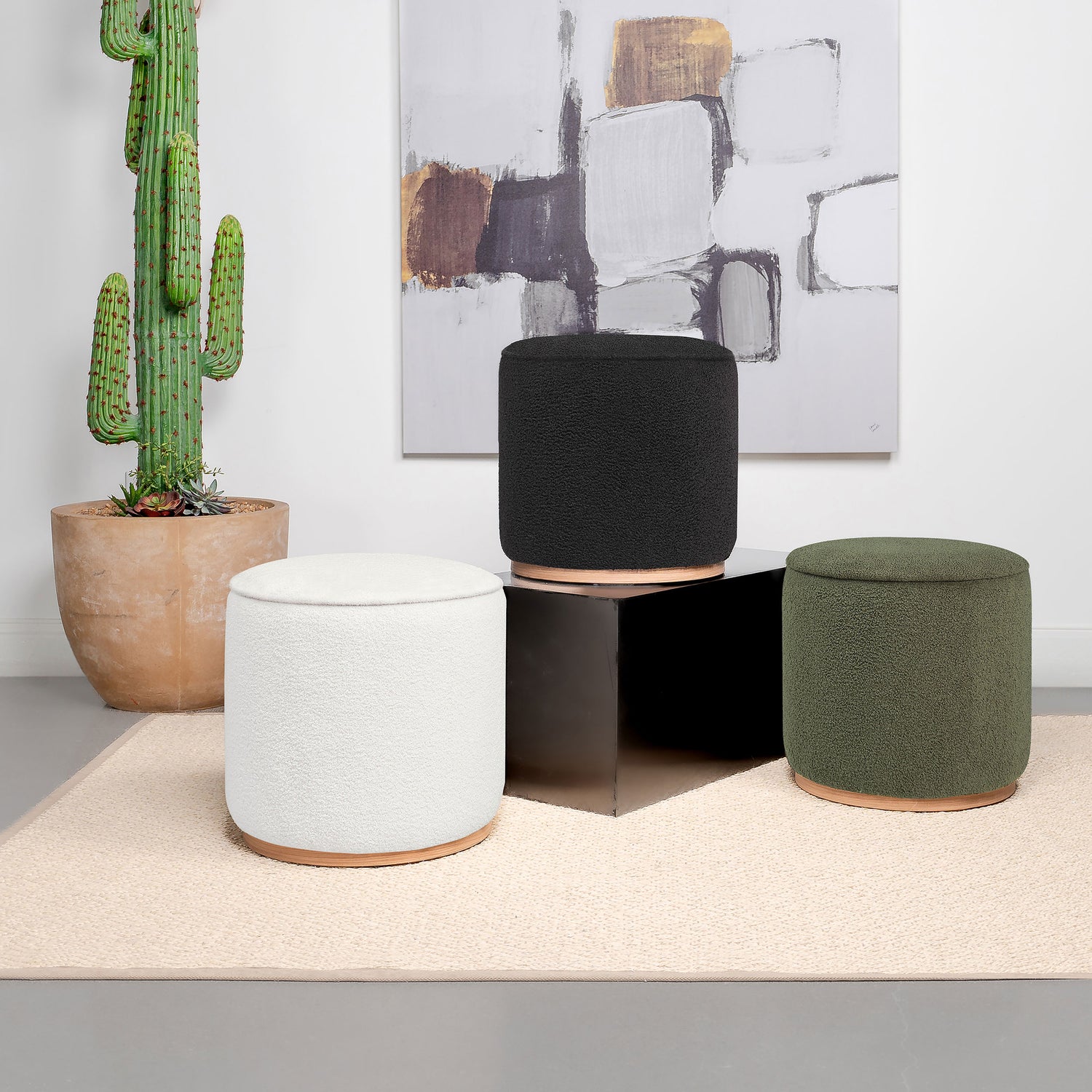 - Includes: One (1) ottoman- Round ottoman with plush faux sheepskin upholstery