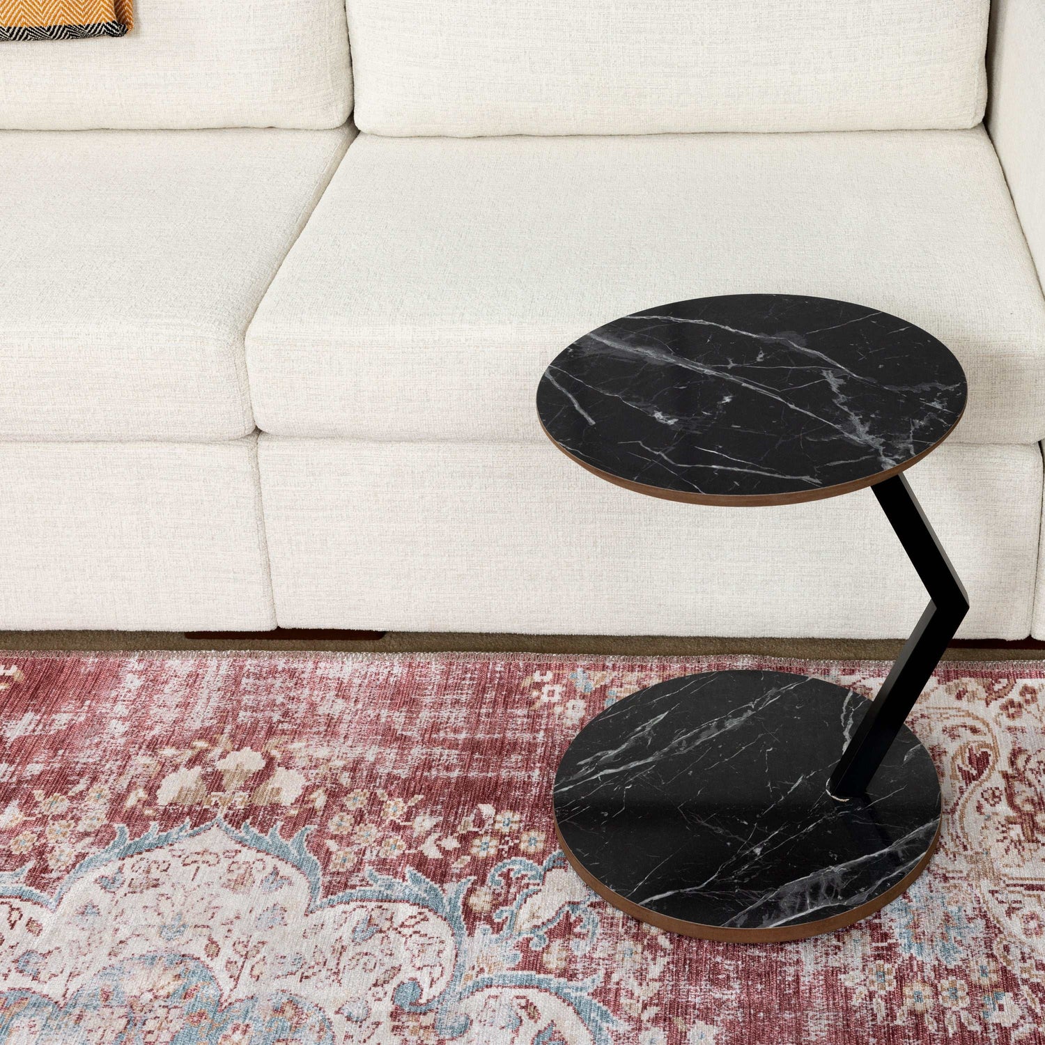 Snack Table: Thanks to this unique design, we can apply this round table to many different occasions, such as sofa tables, TV trays, lamp tables, bedside tables, and snack tables for the living room, bedroom, and study room. The C-shaped design with wheels allows this coffee/snack/TV table to easily slide into a sofa to enhance the limited space to maximum utility.
