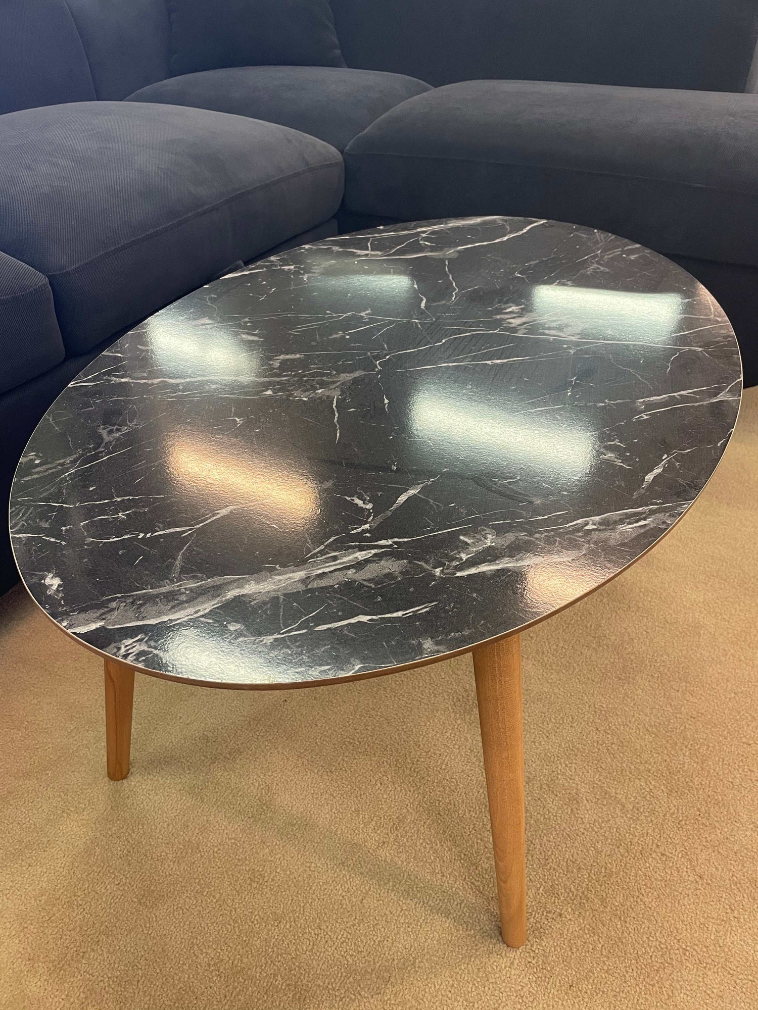 Ellipse Coffee Table: From every angle, this ellipse shape coffee table makes a simply striking statement. Crisp lines are softened with a warm brown finish while the black top adds a casually cool contemporary vibe.